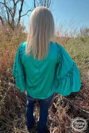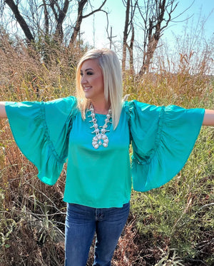 Leave your boring wardrobe in the dark and slip into this stunning INTO THE NIGHT TOP TEAL! This exquisite top is crafted from a sleek turquoise-hued fabric and features flouncy wide sleeves. And forget about fashion faux pas 'cuz this beauty will leave you looking oh-so-fine!
