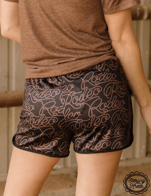 Get ready to lasso in some serious style with these Rodeo Queen Shorts, featuring a playful rodeo rope design on a sleek black fabric. Yee-haw!