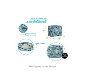 Measurements of the bag are approx. 8.5"L X 6.5"H X 3.5W.This cosmetic pouch is great, it can be used as a toiletry bag, makeup bag, jewelry bag, or even to hold hair products, nail polish and healthcare items.