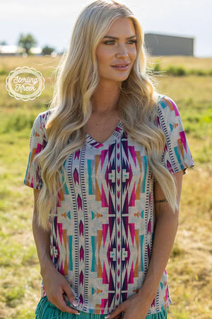 This top is the wild party animal you'll always be down for - double the fun with it's reversible v-neck, featuring a fierce turquoise leopard one side and a colorful aztec pattern on the other! We Go Together - like mac & cheese! 🧀