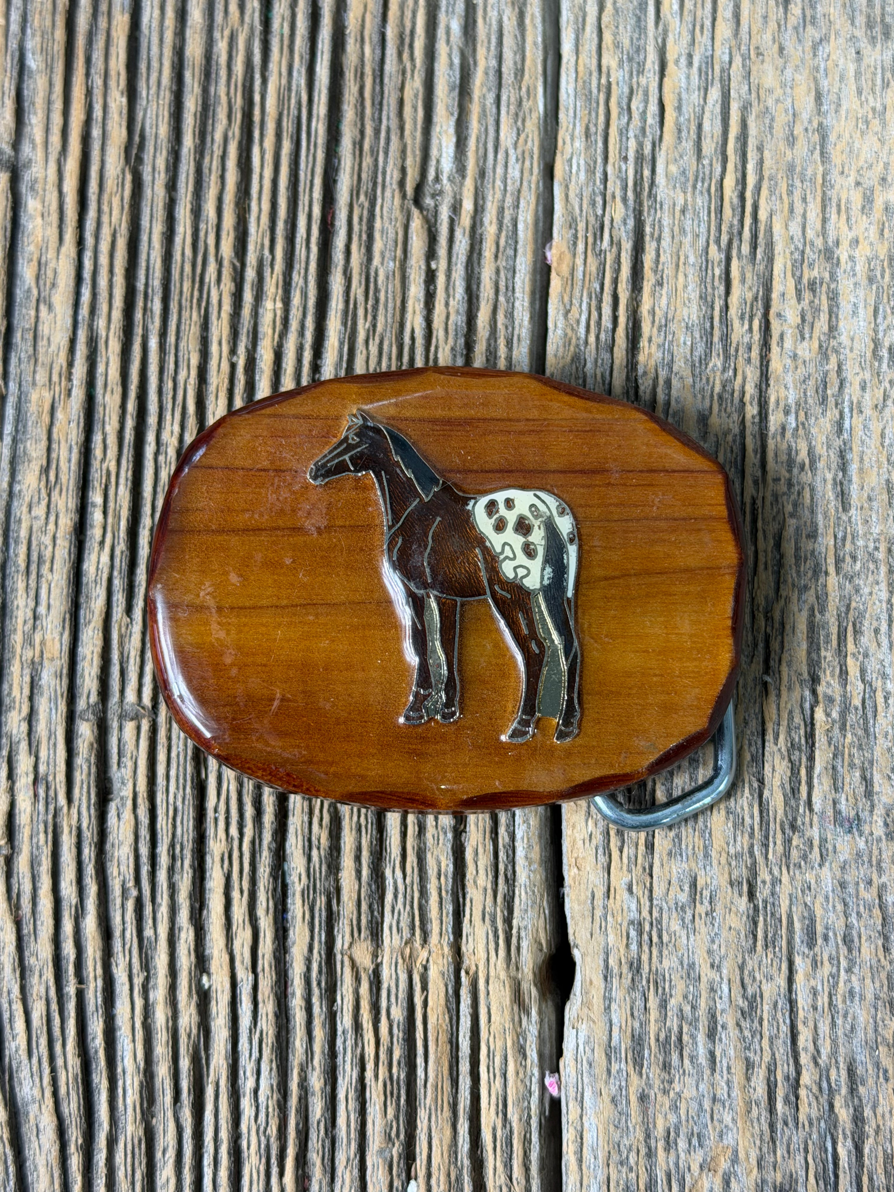 Appaloosa Horse Wood Belt Buckle