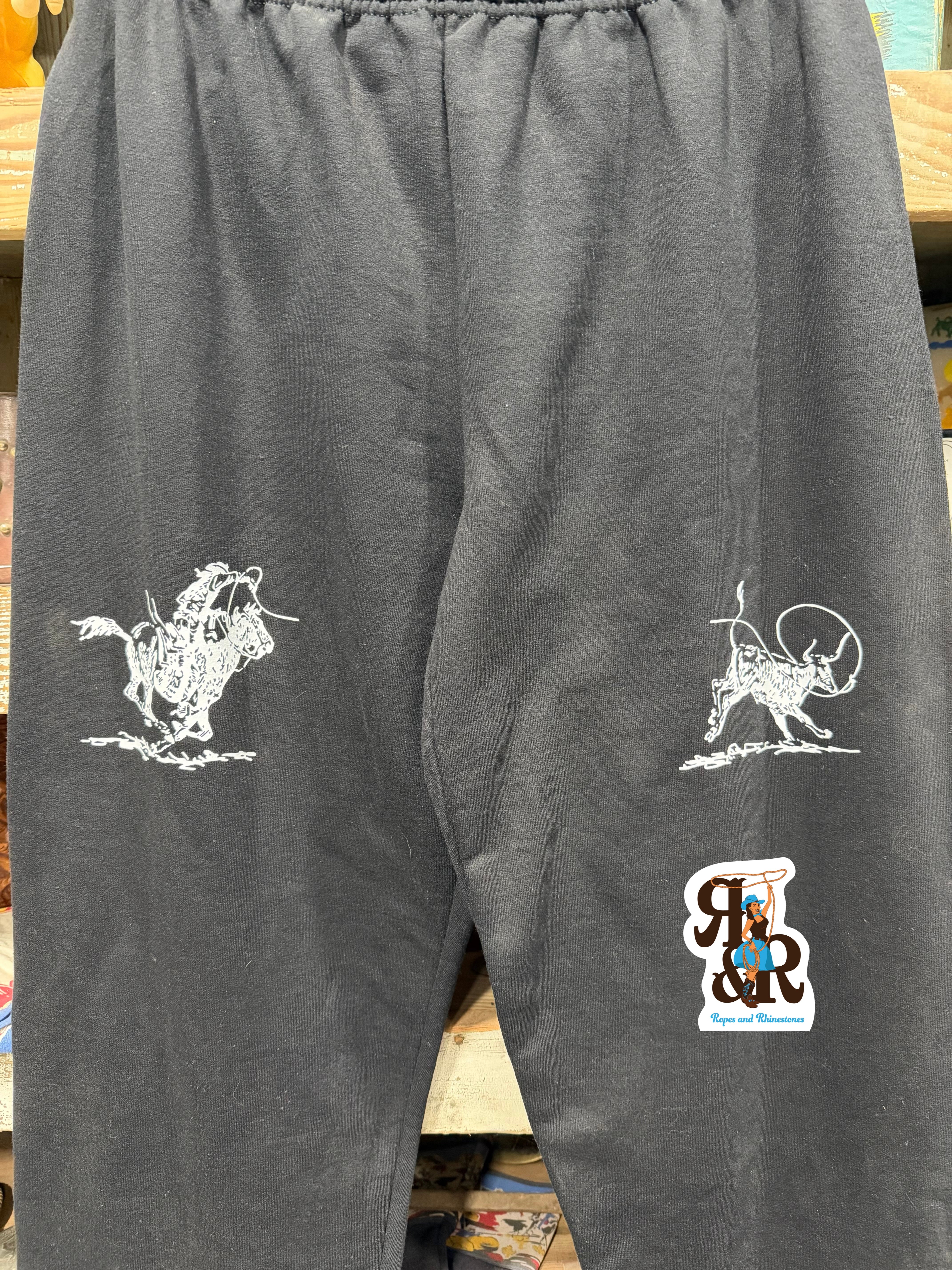 "Kick back in comfort with our rope and ride Sweatpants. These Western-inspired sweatpants combine style and coziness, making them perfect for casual days. Look good while feeling good!" Gildan heavy blend brand is unisex with a generous fit. 50/50 cotton/poly blend. Matching sweatshirt also available