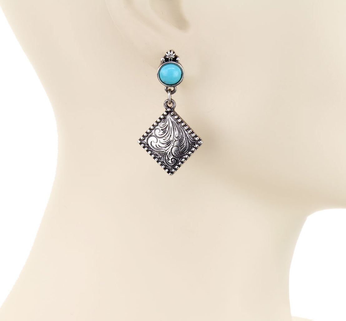 Silver Engraved Diamond Earrings